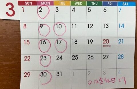 定休日が表示されない方はこちらから(3月の定休日)
